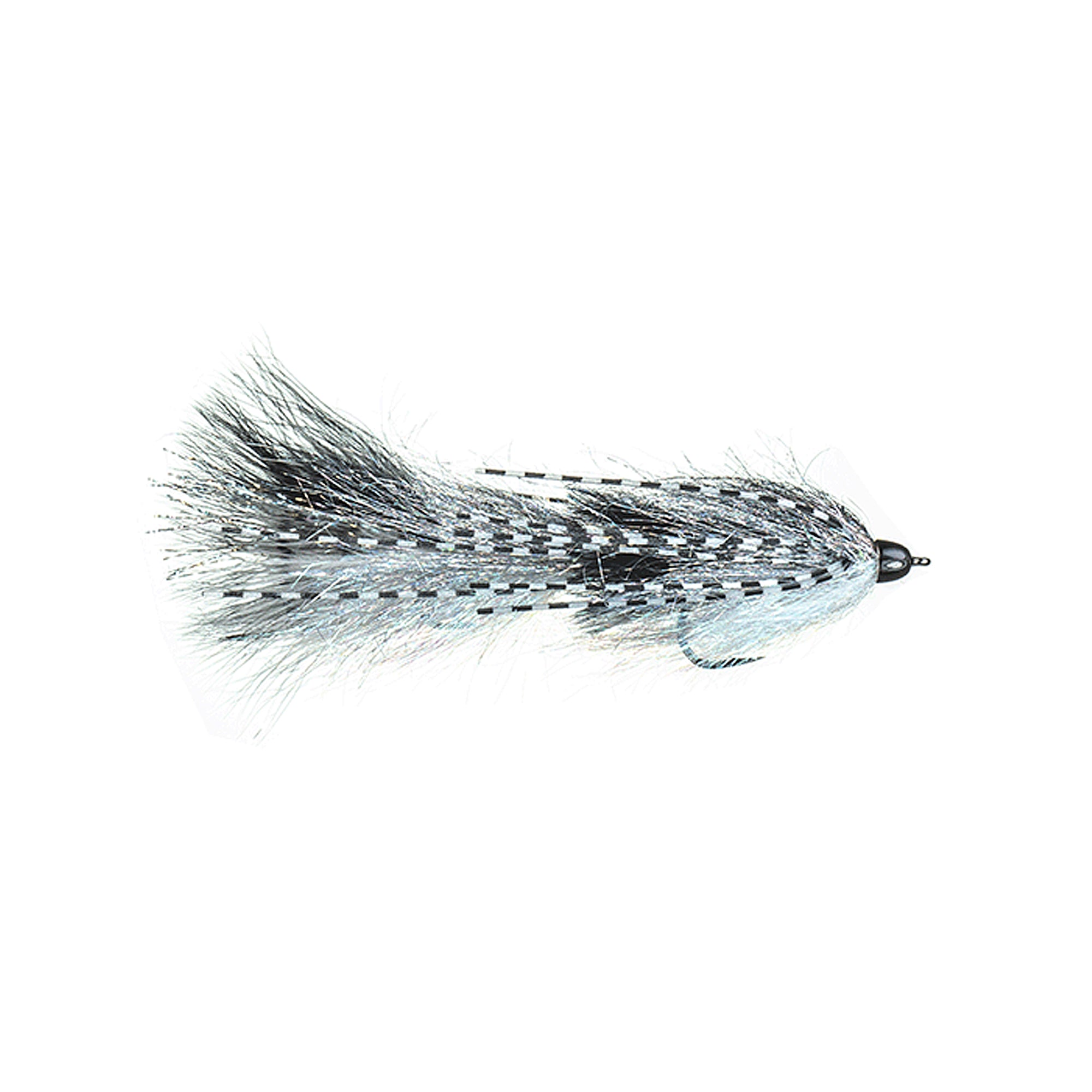 This double hook articulated streamer is tied up in our favorite monochromatic color scheme and features tons of flash and movement created by the materials used and the rubber legs that undulate underwater during the drift making sure this streamer will not go anywhere unnoticed. The weighted cone bead sinks this fly quickly and keeps it down. Fish this on a sinking, or intermediate fly line, but in a pinch you can use it on a floating line with a sinking leader and split shot as well.